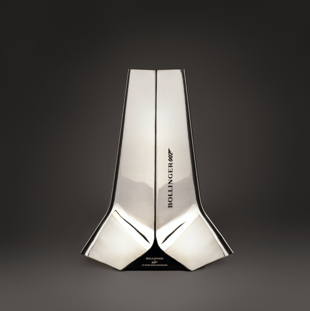 The Bollinger Tribute to Moonraker Luxury Limited Edition is inspired by the space-themed film, the eleventh to be produced and the fourth to star Roger Moore. Based on the space shuttle, which Bond was sent to investigate the theft of, Bollinger enlisted designer Eric Berthes to re-imagine the craft originally created by production and set designer Ken Adam.